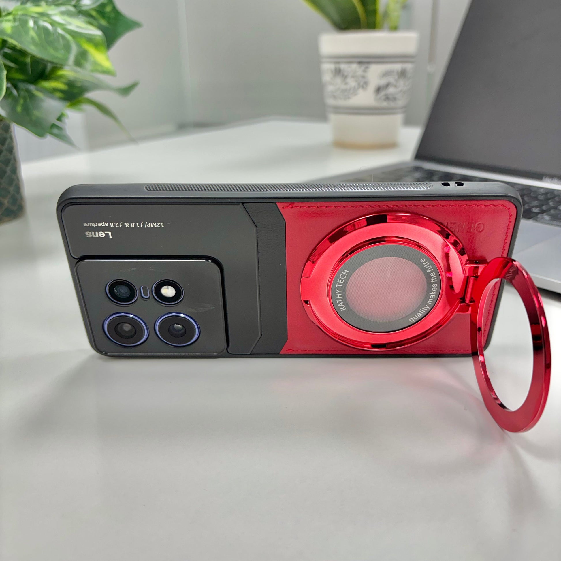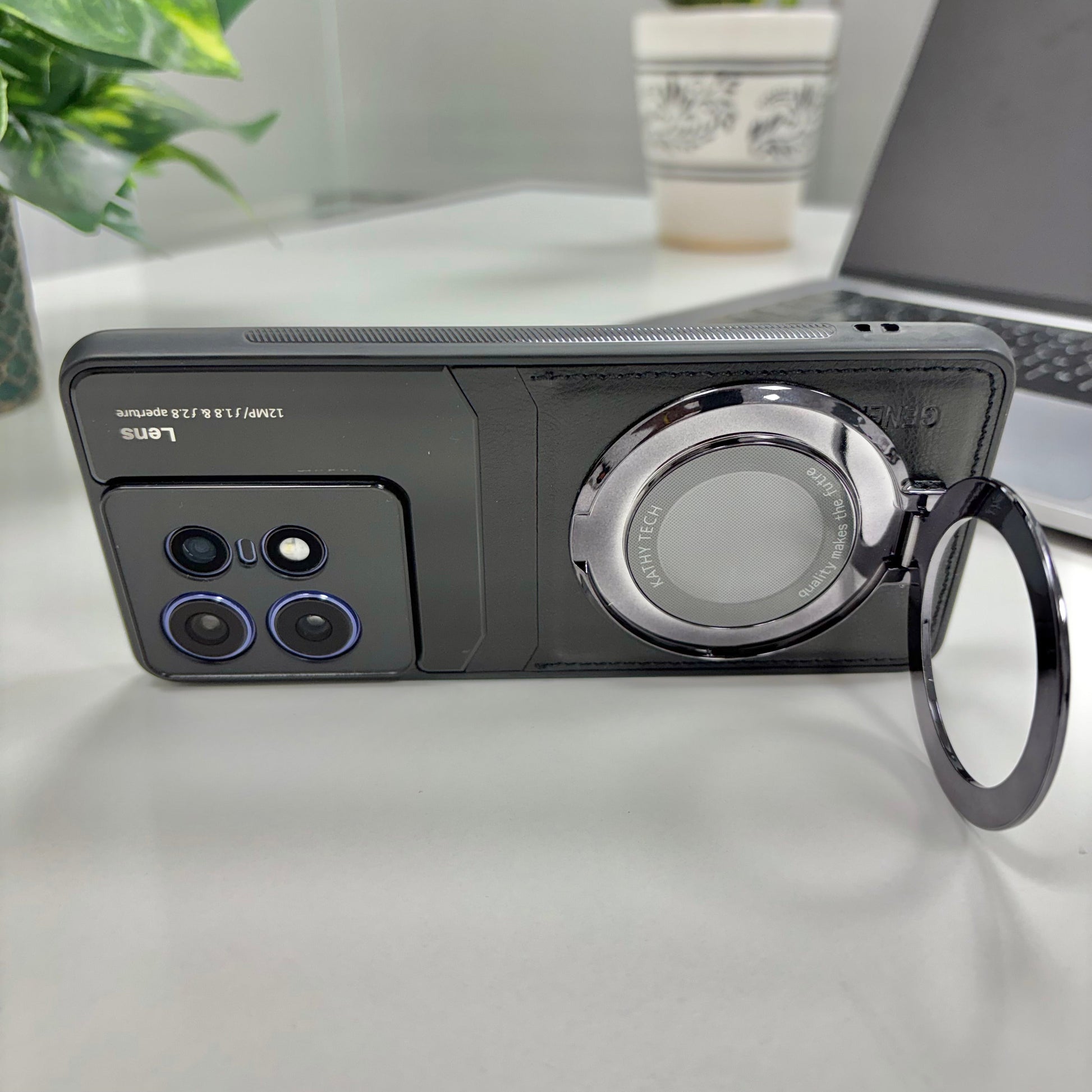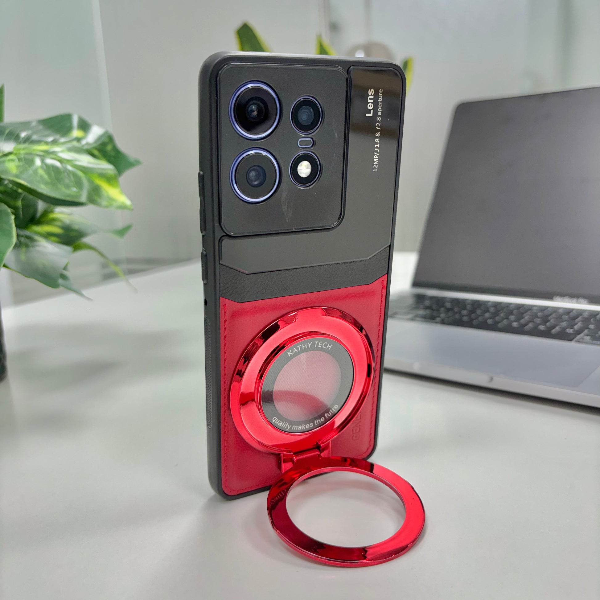 Motorola Edge 50 Pro 5G Original Luxury Leather Lens Magnifier Ring Stand Case