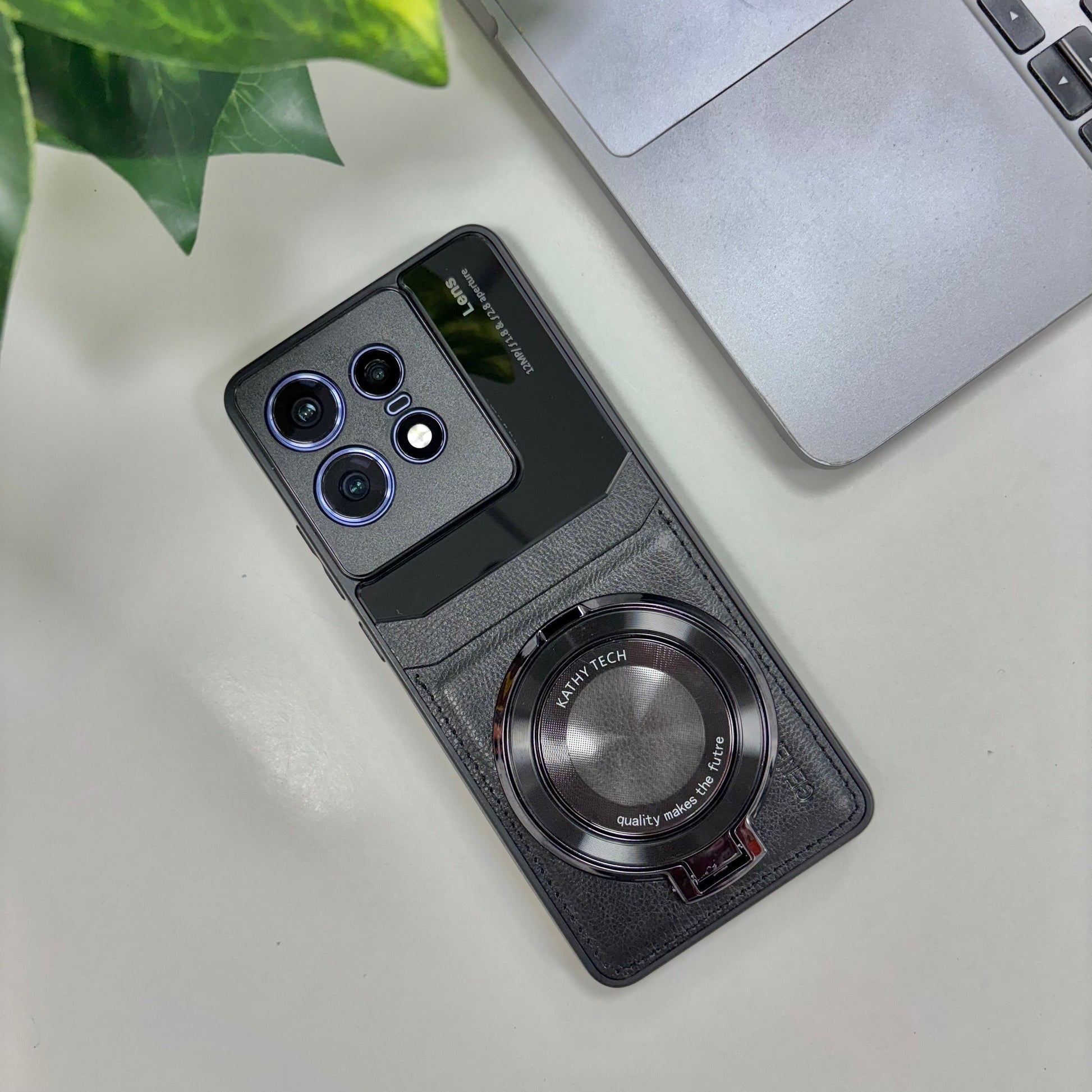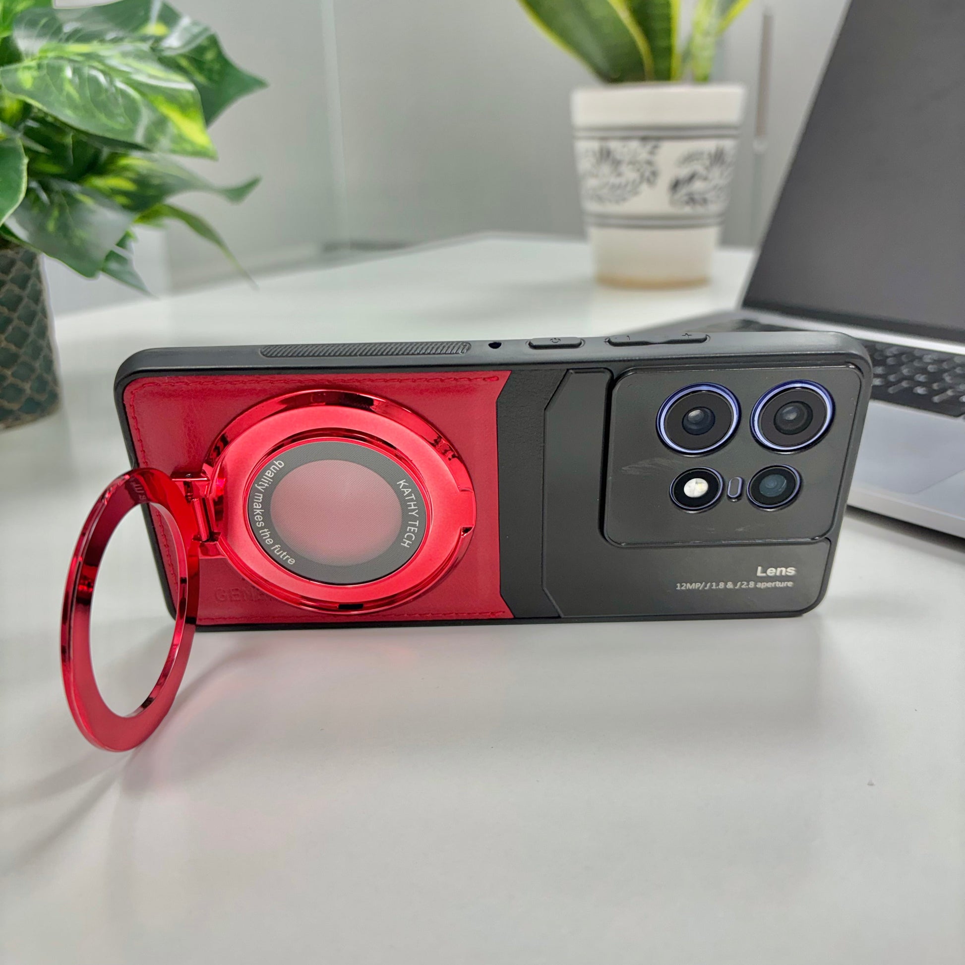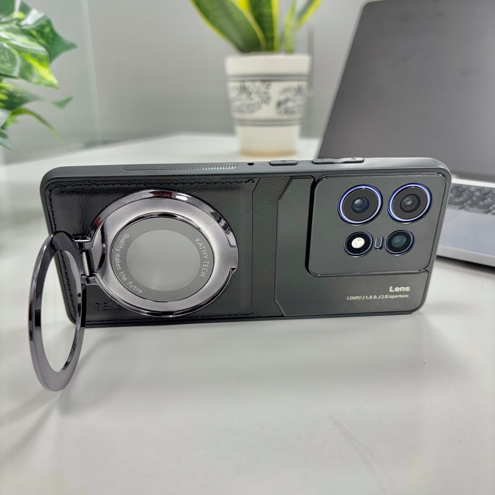 Motorola Edge 50 Pro 5G Original Luxury Leather Lens Magnifier Ring Stand Case