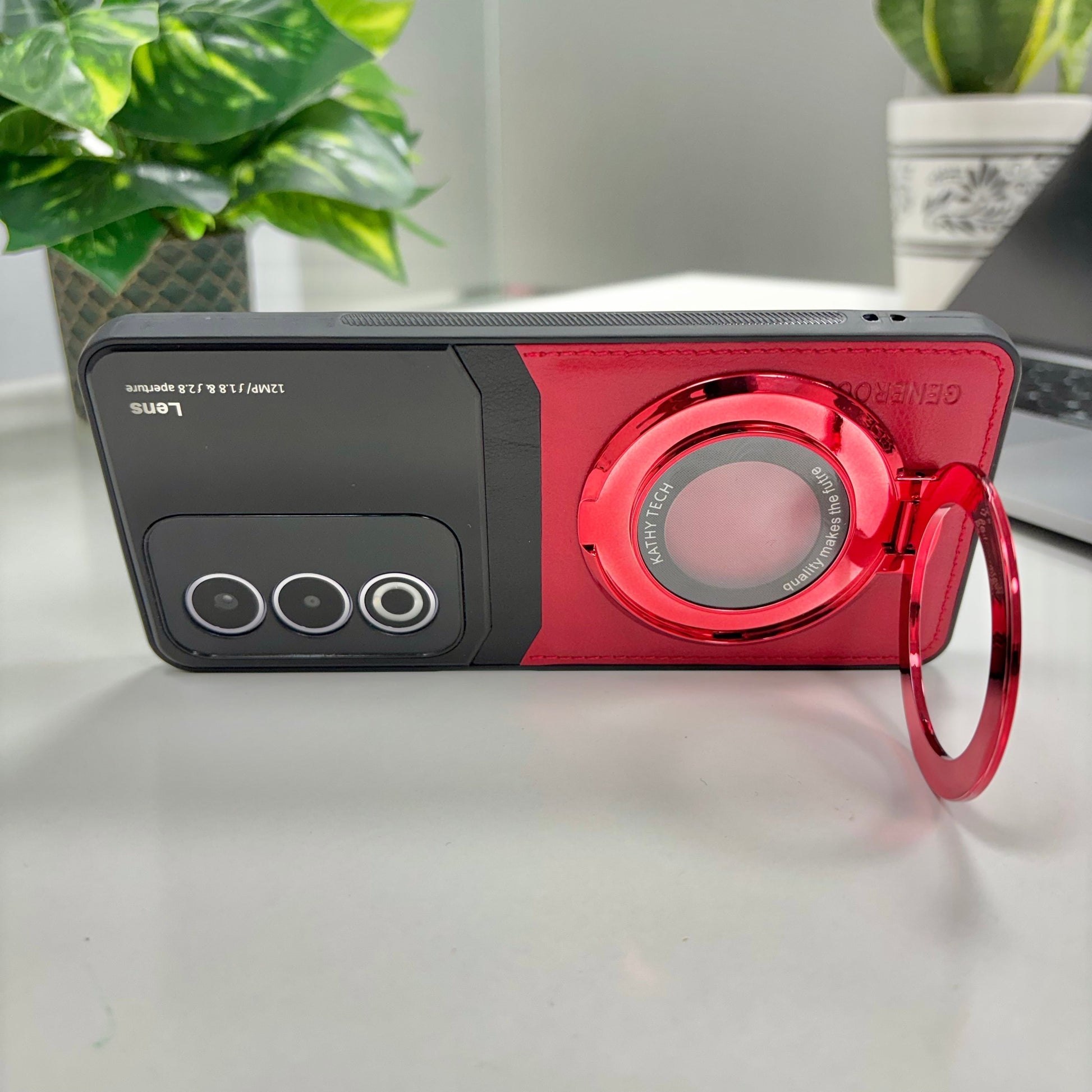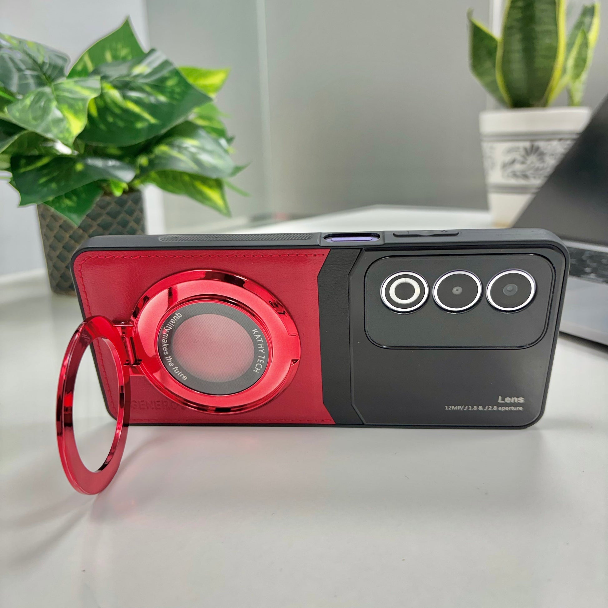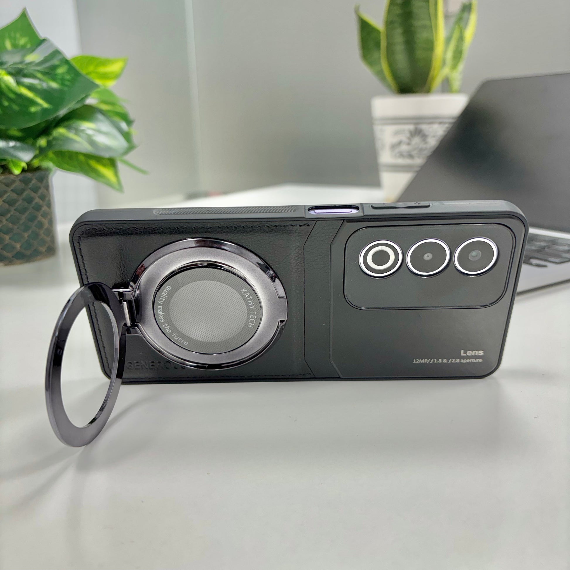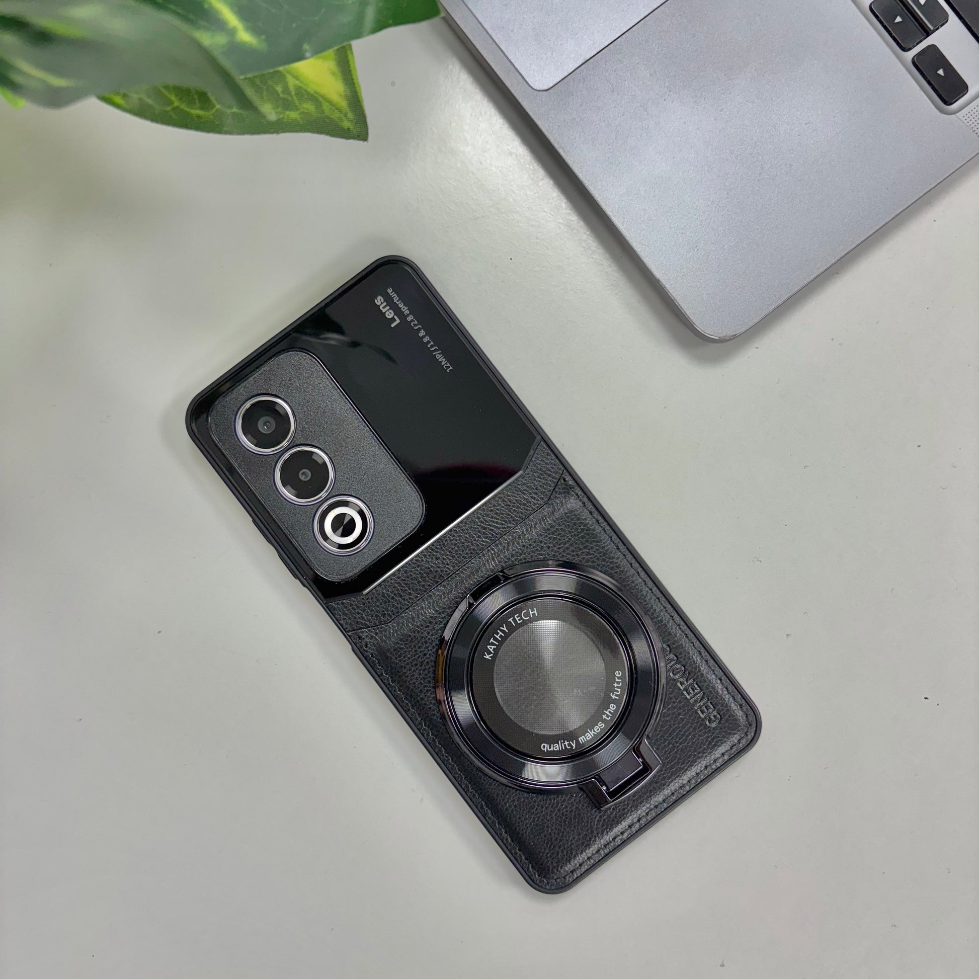 Oppo A3 Pro 5G Original Luxury Leather Lens Magnifier Ring Stand Case