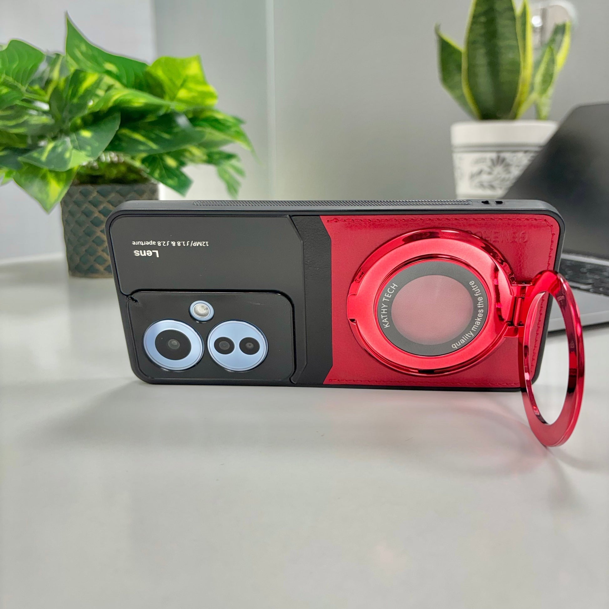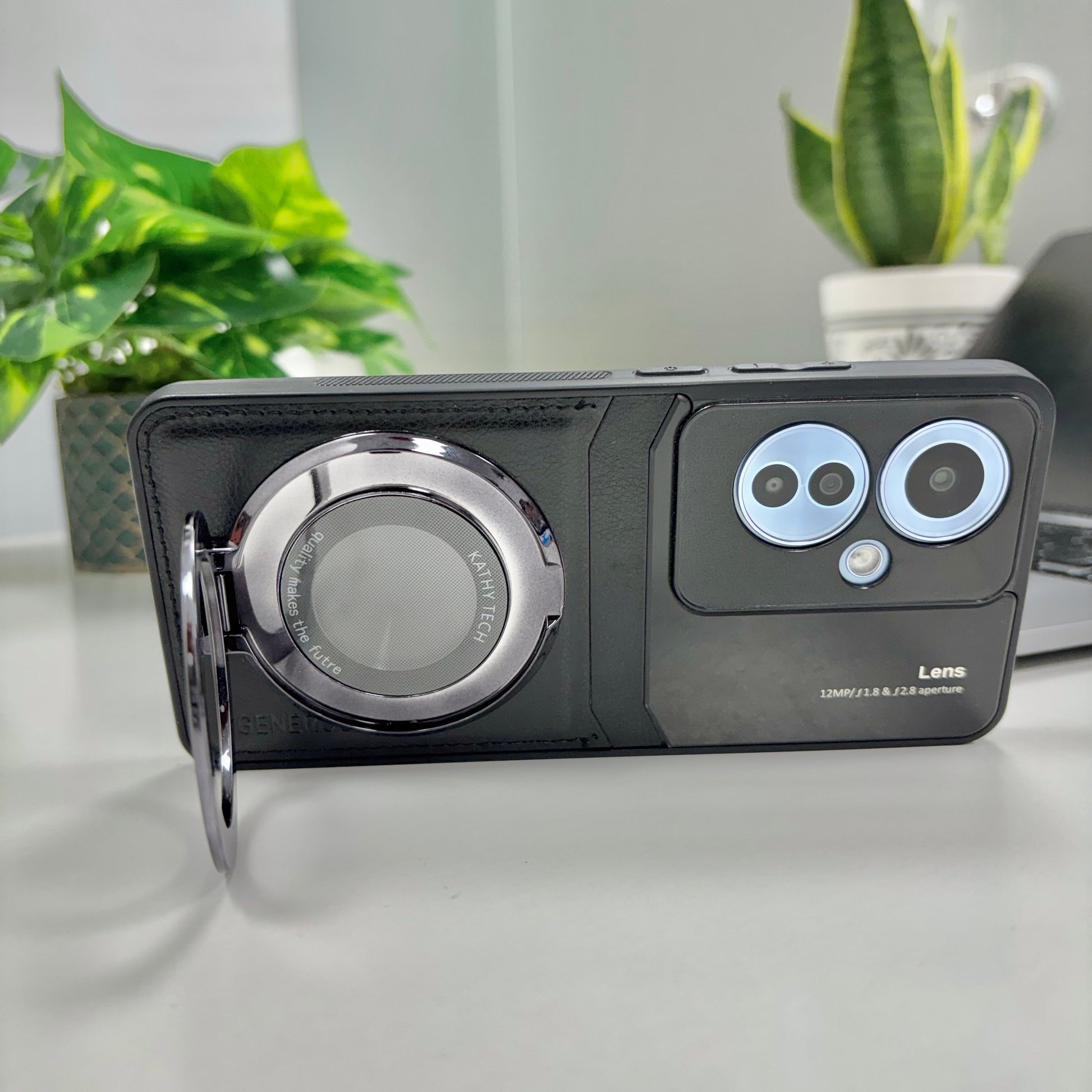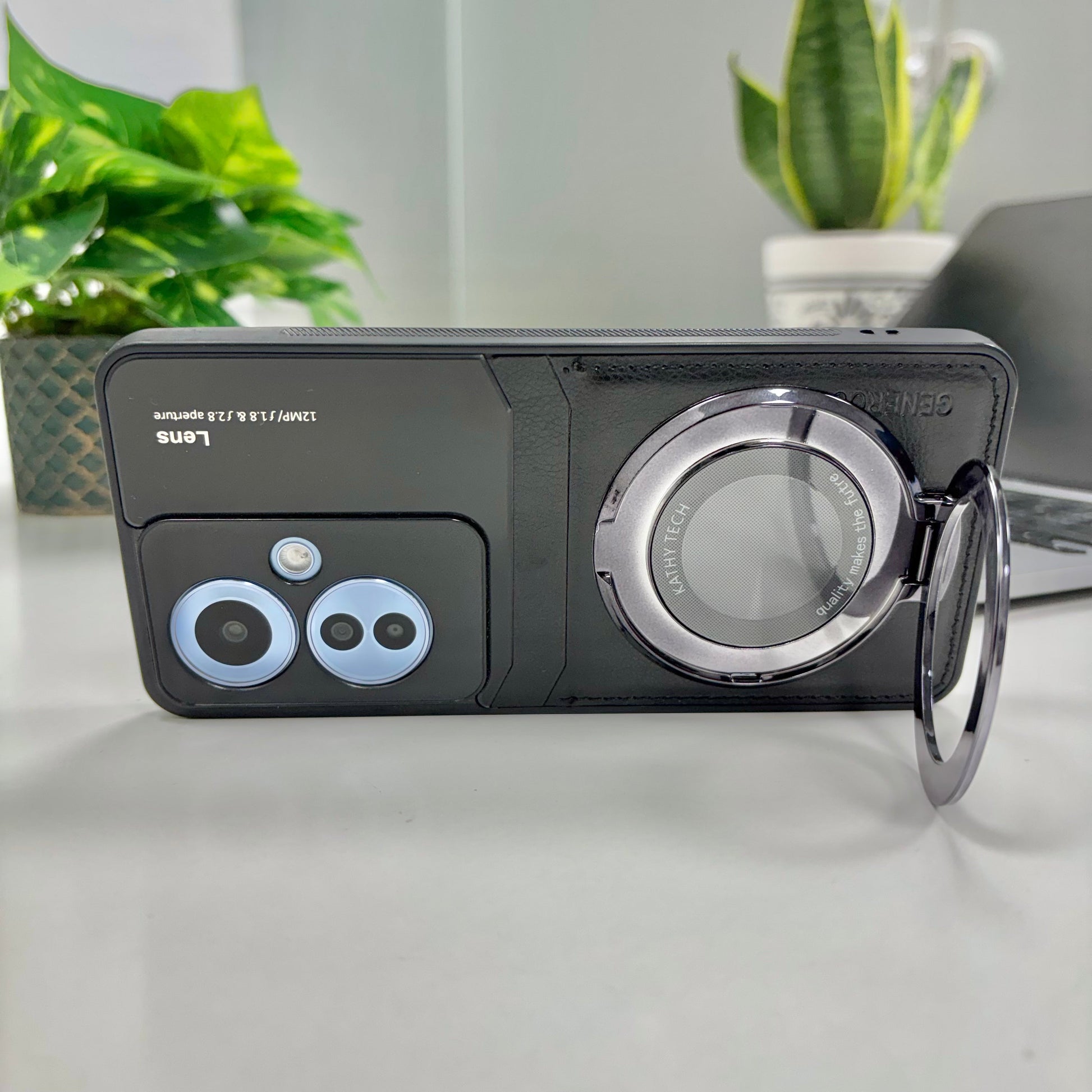 Oppo F25 Pro 5G Original Luxury Leather Lens Magnifier Ring Stand Case