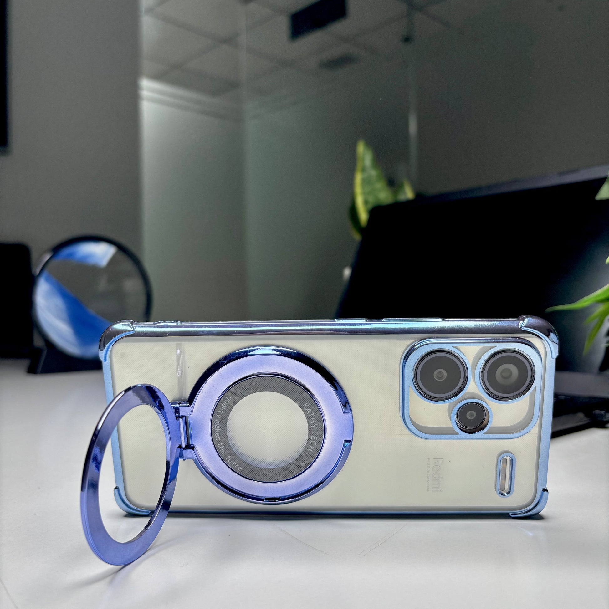 Magnetic Metal Kickstand Transparent Case
