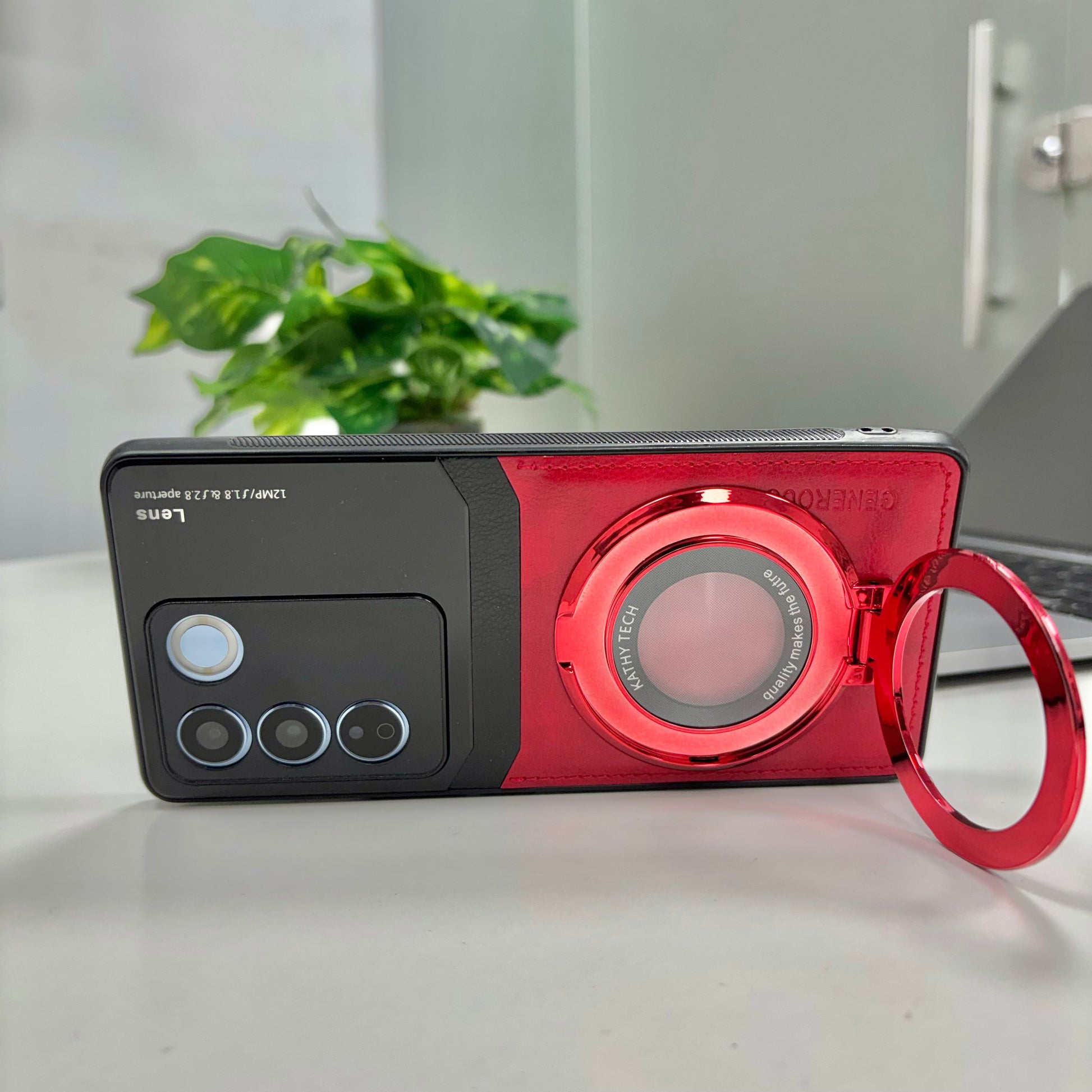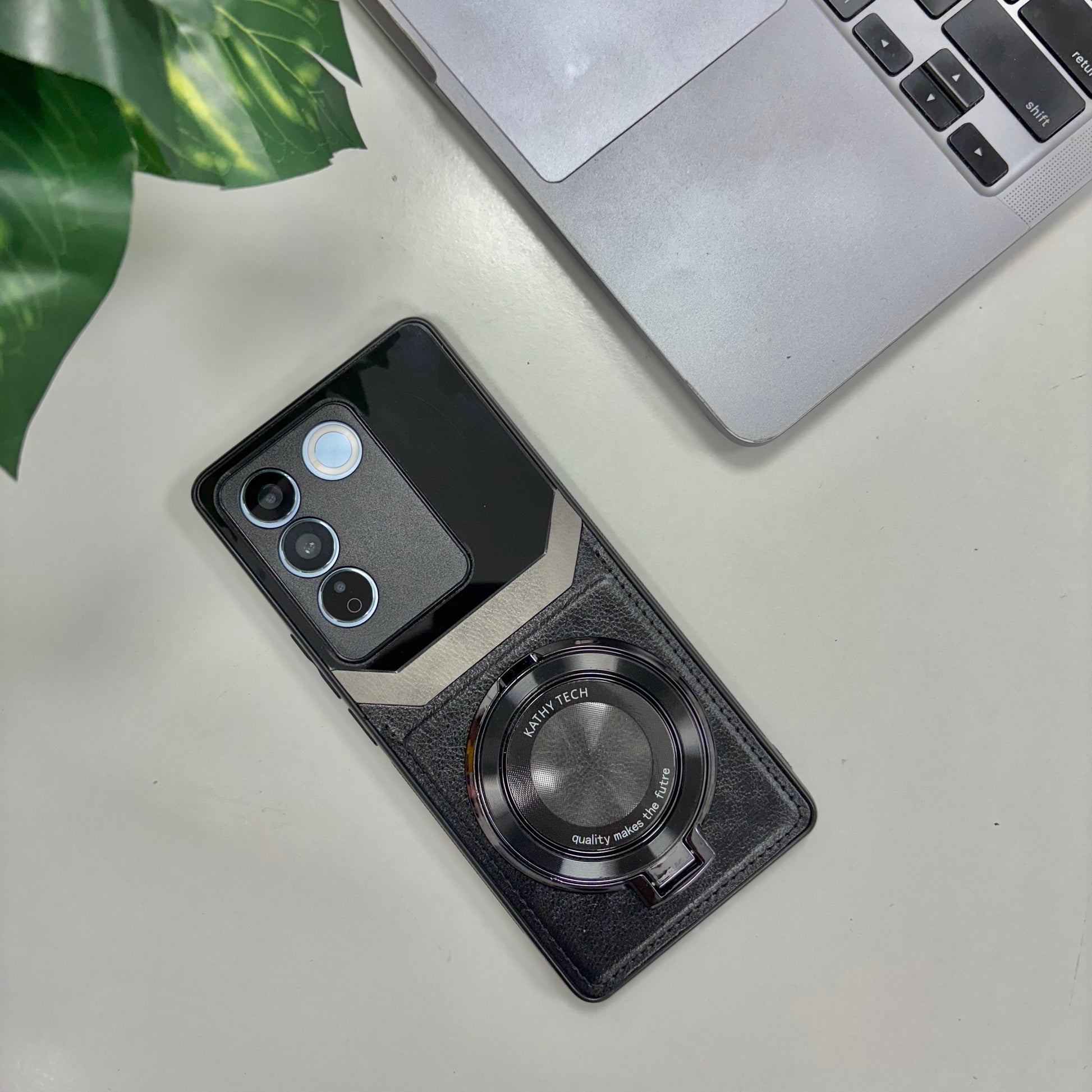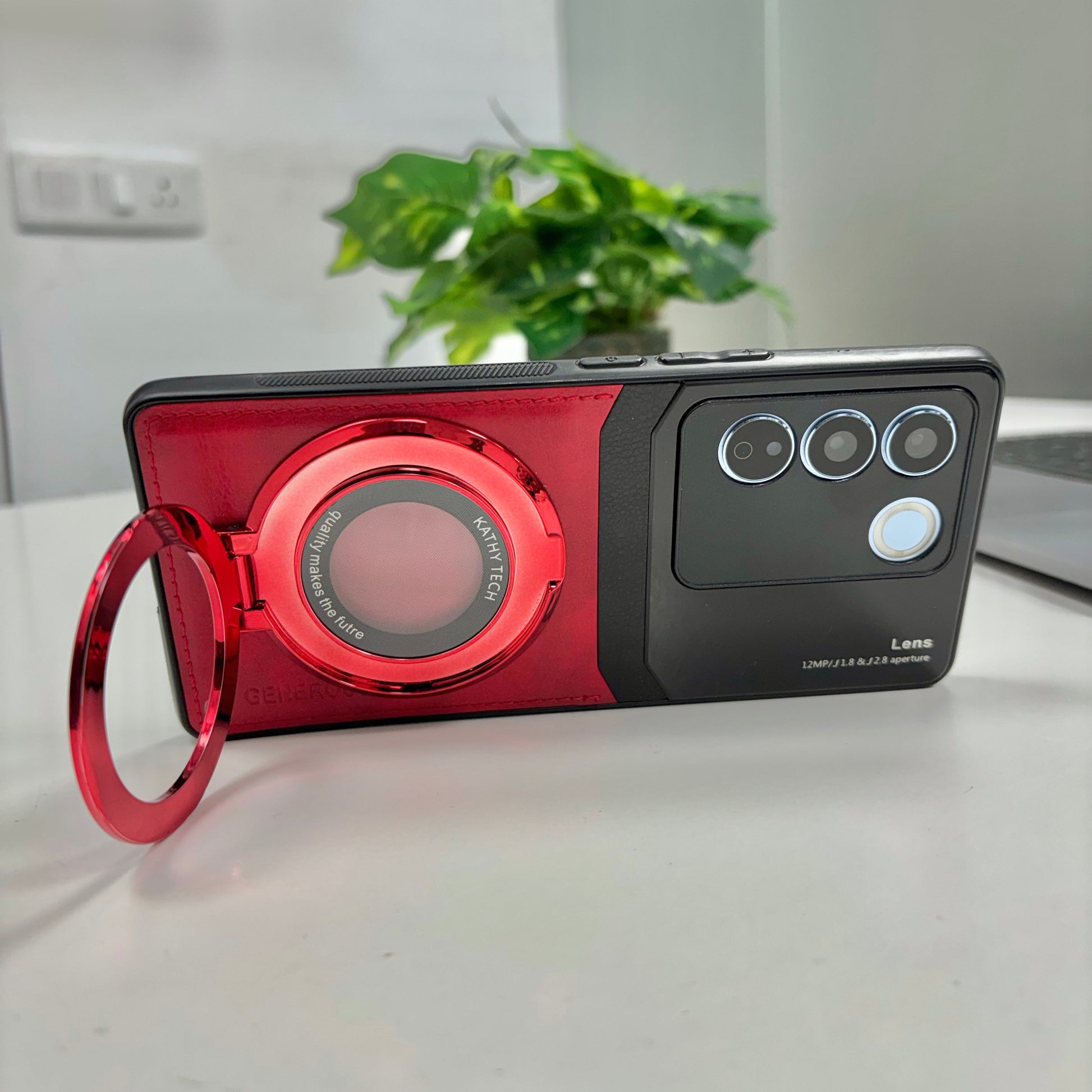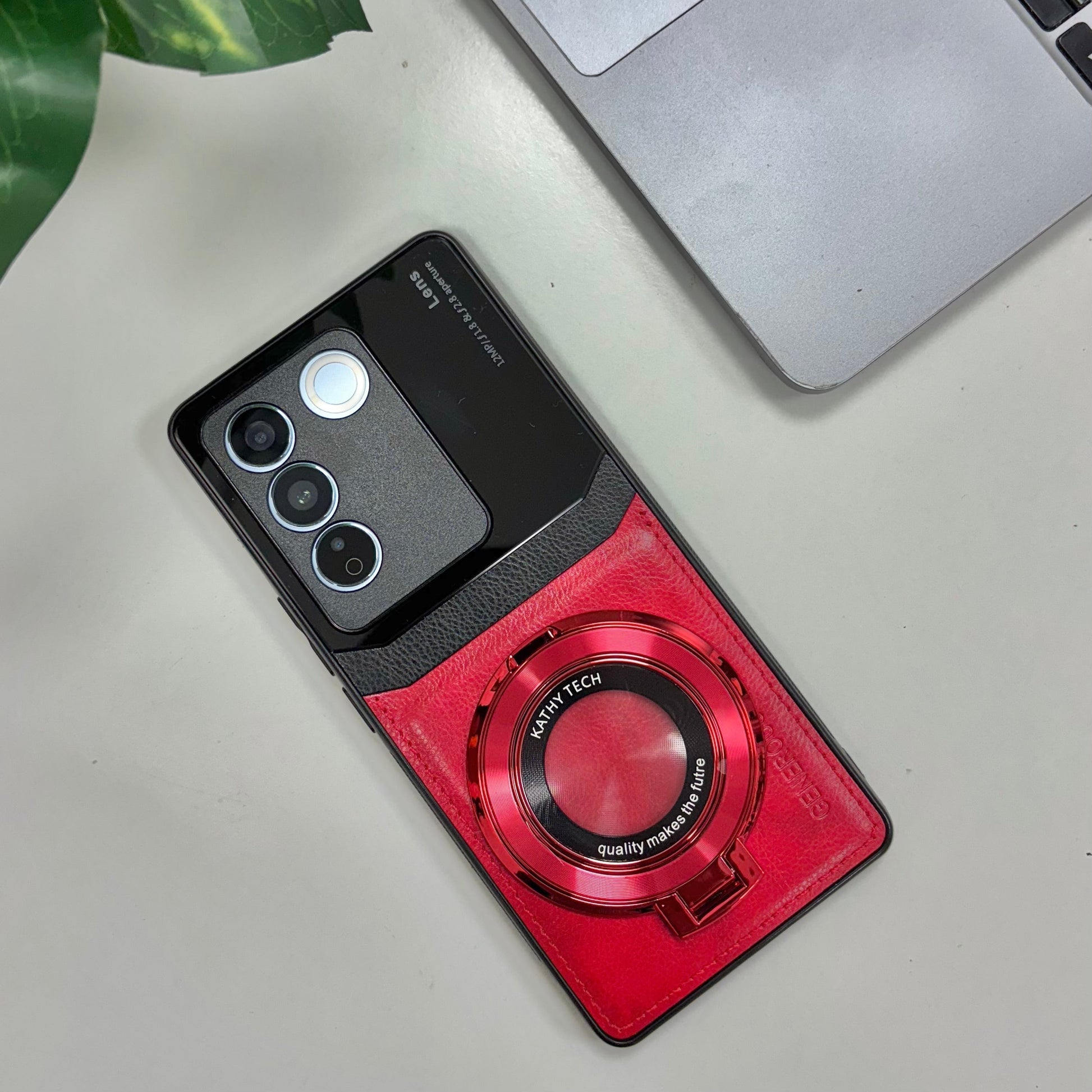 Vivo V27 5G Original Luxury Leather Lens Magnifier Ring Stand Case