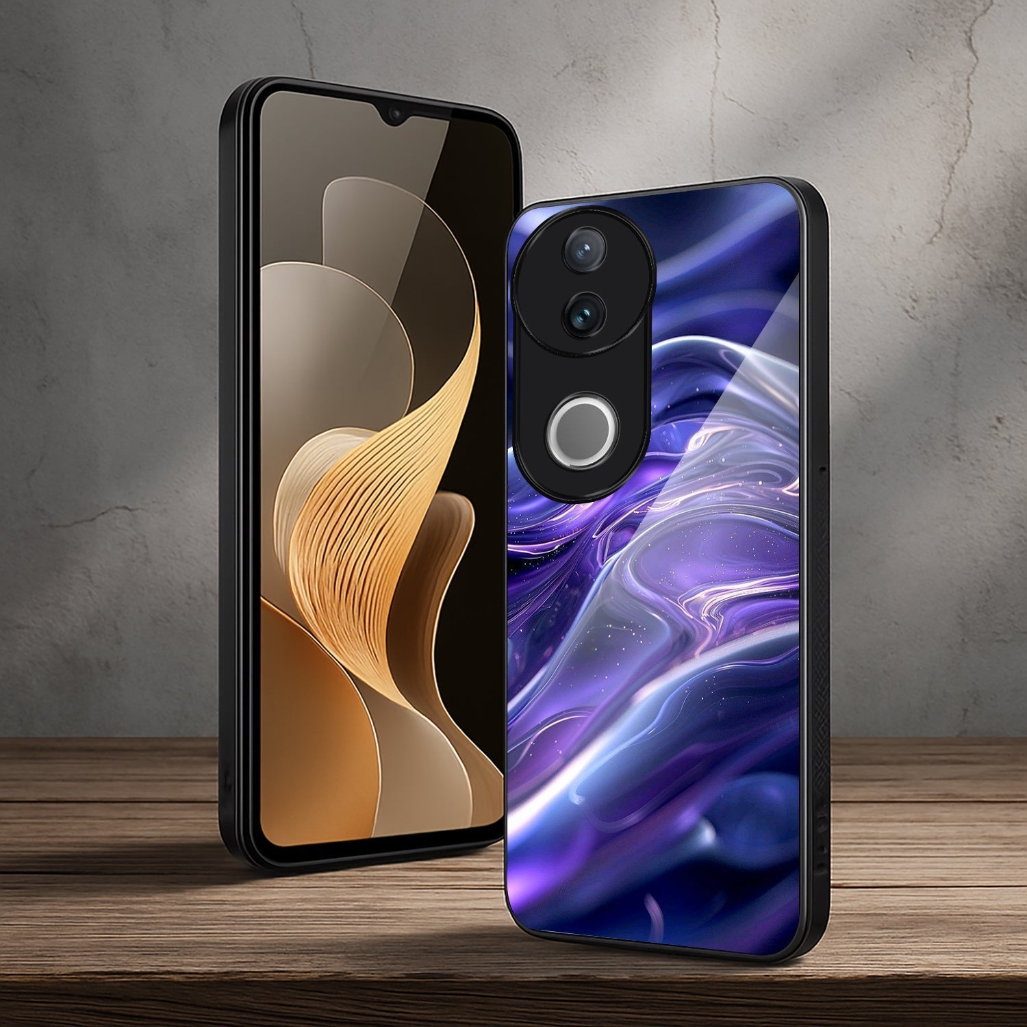 Vivo V50 5G Premium Acrylic Shockproof Glass Back Case (Purple Swirl)