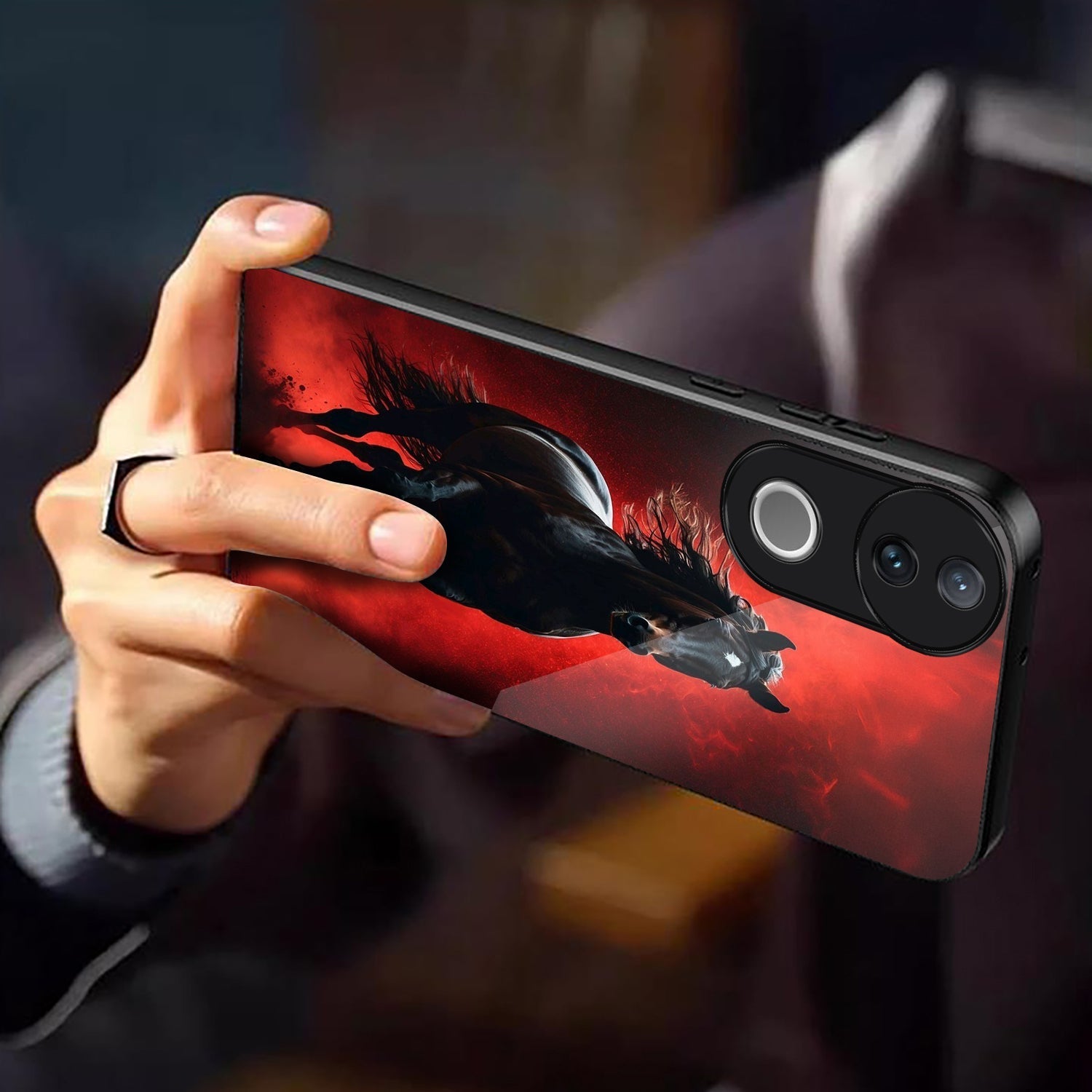 Vivo V50 5G Premium Acrylic Shockproof Glass Back Case (Red Blaze Rider)